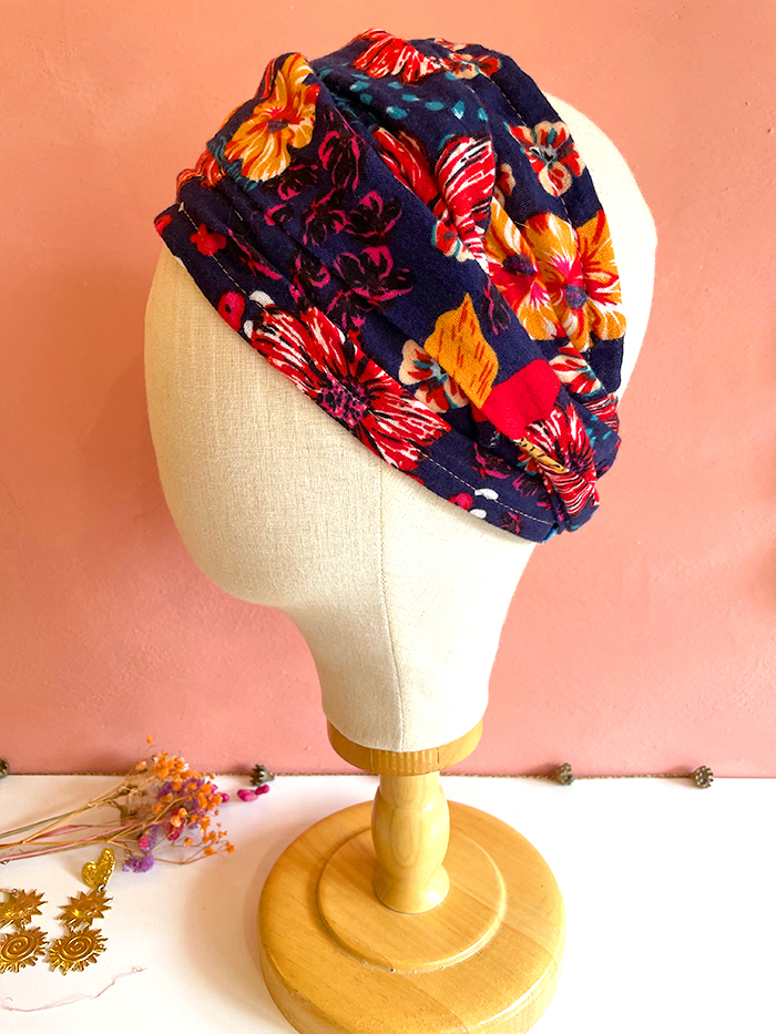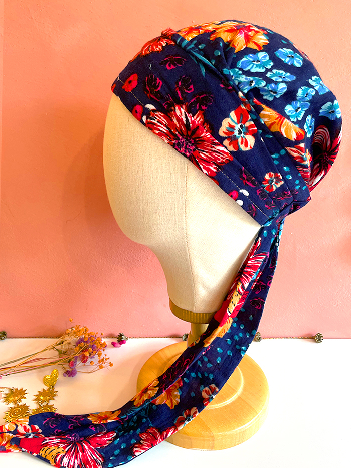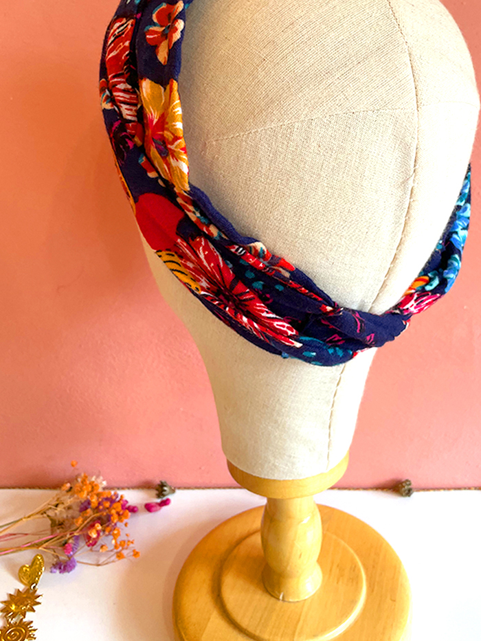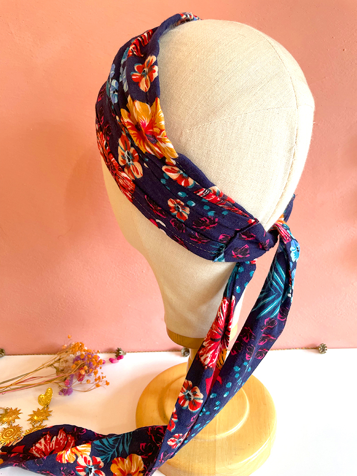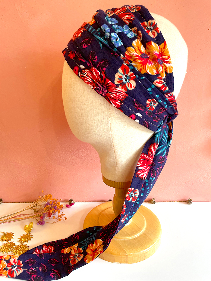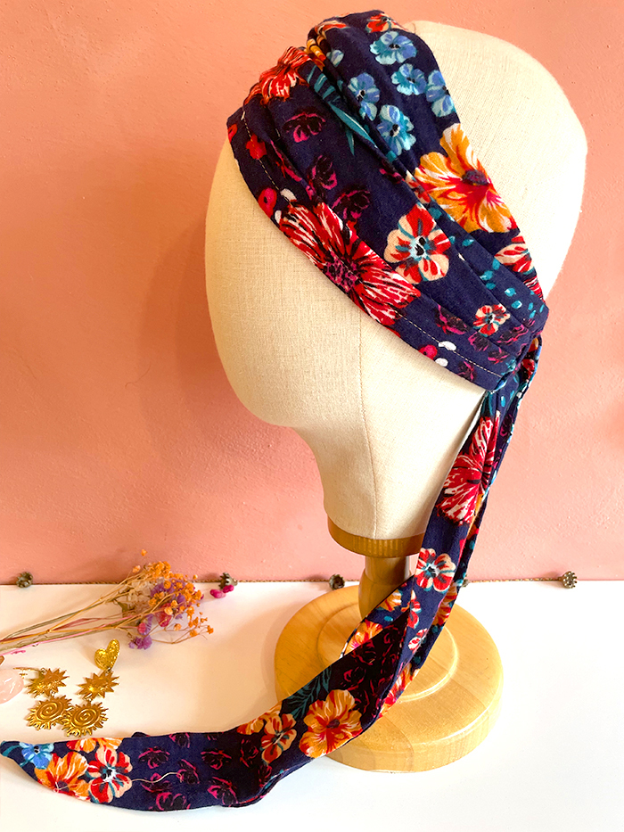 Le bandeau à cheveux à fleurs Louise apporte du volume tout en douceur. D’abord, il se porte comme un bandeau large. Ensuite, il se transforme en fichu pour couvrir toute la tête. Ainsi, vous adaptez facilement votre coiffure à vos envies, à votre tenue ou à votre besoin du moment.