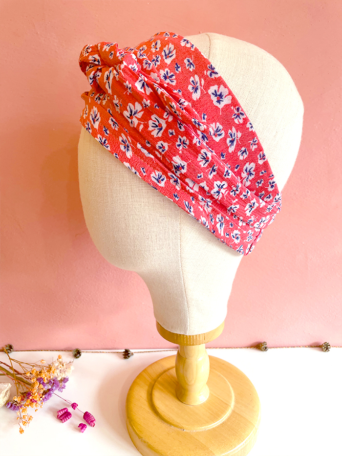 Le bandeau à cheveux Liberty Pamplemousse apporte du volume tout en douceur. D’abord, il se porte comme un bandeau large. Ensuite, il se transforme en fichu pour couvrir toute la tête. Ainsi, vous adaptez facilement votre coiffure à vos envies, à votre tenue ou à votre besoin du moment.