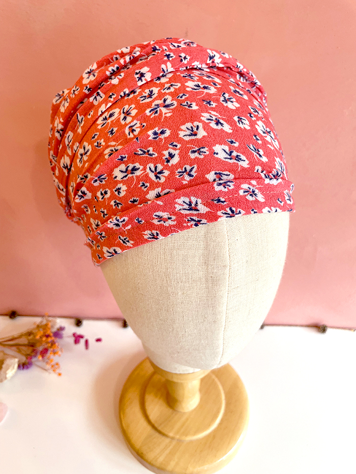 Le bandeau à cheveux Liberty Pamplemousse convient parfaitement en cas de pelade ou d’alopécie. En effet, son port modulable permet de couvrir partiellement ou totalement la tête afin d’accompagner chaque étape de la perte ou de la repousse des cheveux.