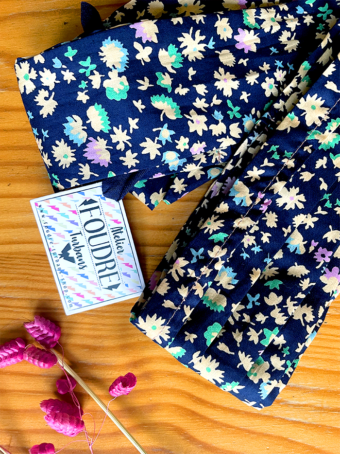 Confectionné en petites séries à Bordeaux à l’Atelier Foudre Turbans où je vous reçois sur rendez-vous.