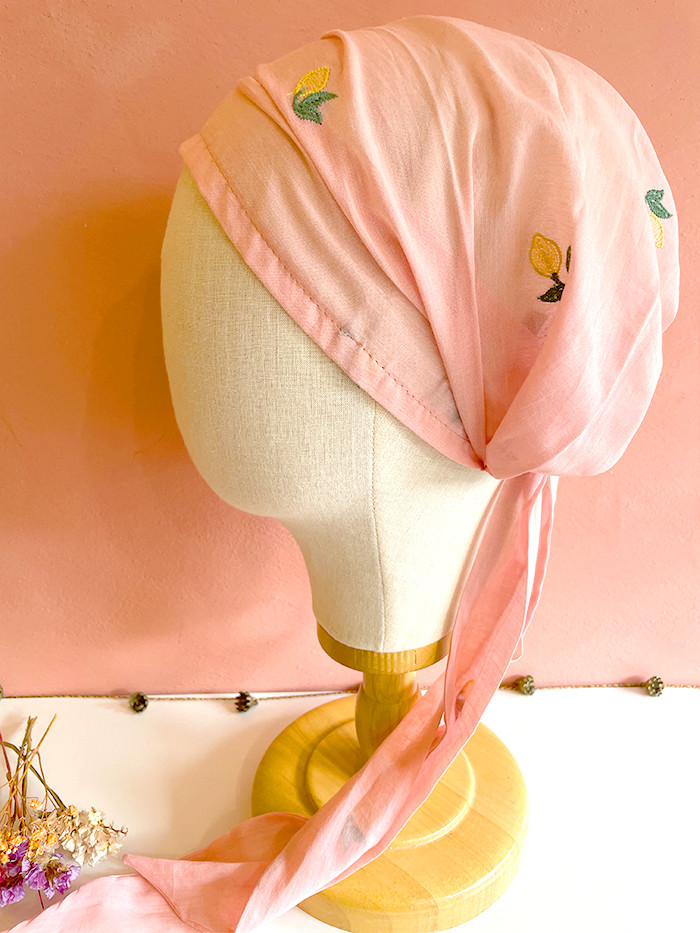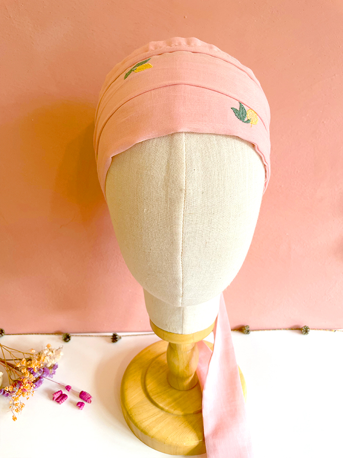 Le bandeau à cheveux Citron rose convient parfaitement en cas de pelade ou d’alopécie. En effet, son port modulable permet de couvrir partiellement ou totalement la tête afin d’accompagner chaque étape de la perte ou de la repousse des cheveux.