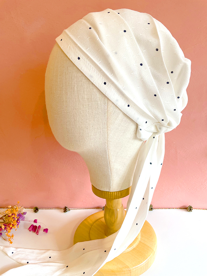 Le bandeau à cheveux à pois blanc convient parfaitement en cas de pelade ou d’alopécie. En effet, son port modulable permet de couvrir partiellement ou totalement la tête afin d’accompagner chaque étape de la perte ou de la repousse des cheveux.