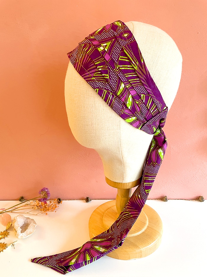 Confectionné en petites séries à Bordeaux à l’Atelier Foudre Turbans où je vous reçois sur rendez-vous.