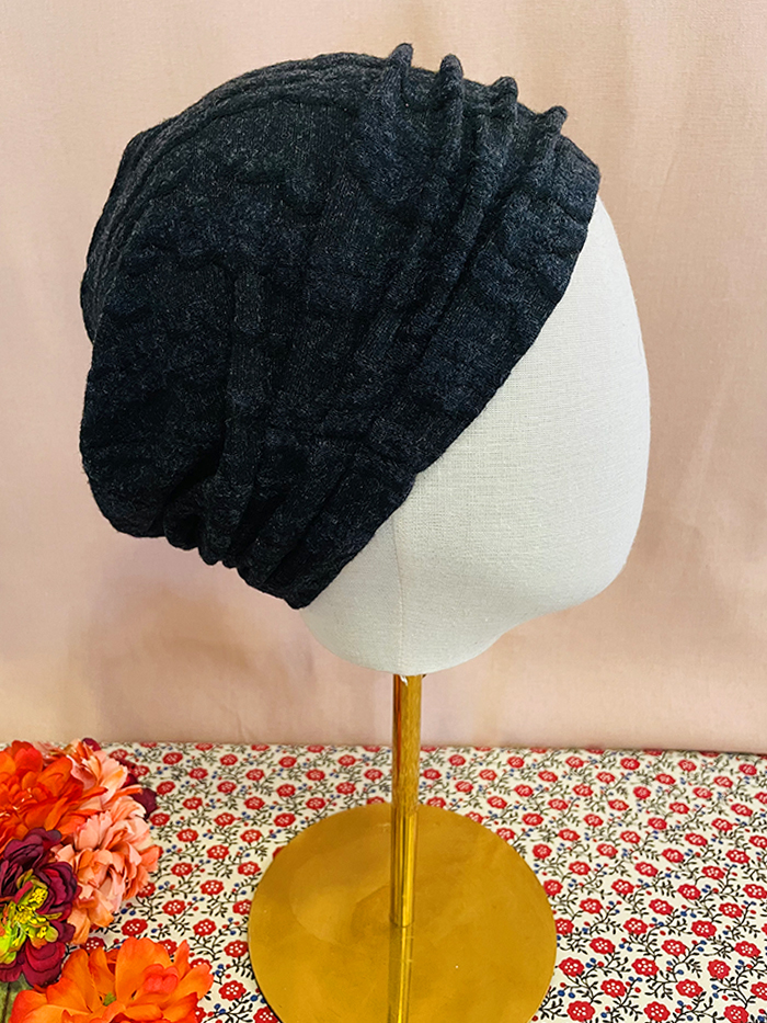 Bonnet pour chimiothérapie, pelade et alopécie chaud et confortable en maille épaisse gaufrée gris foncé : 100% polyamide.