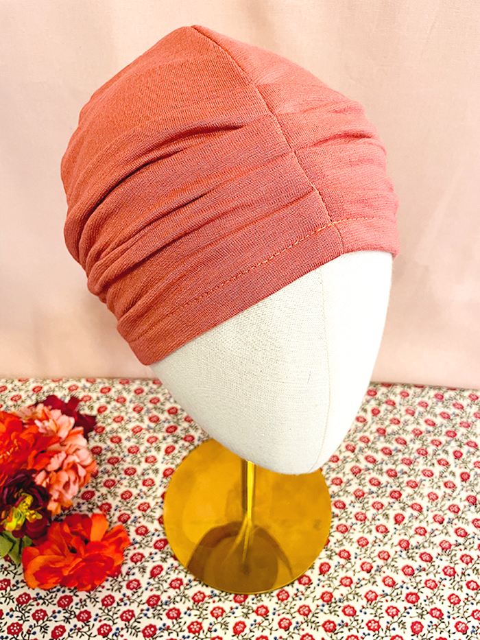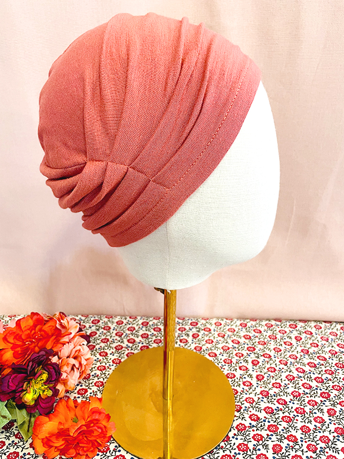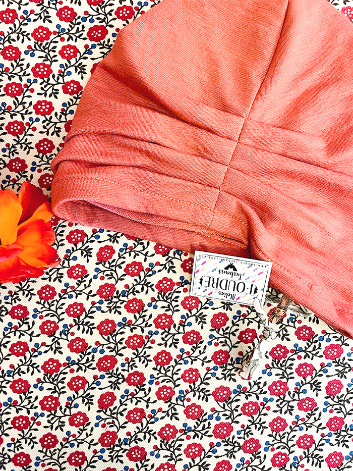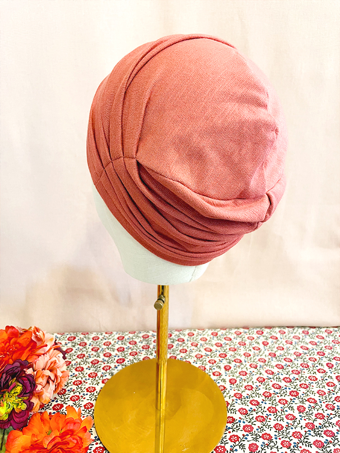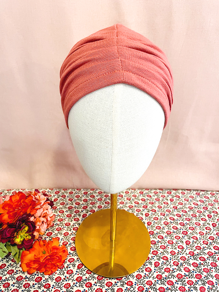 Bonnet pour chimiothérapie, pelade et alopécie en tissu sweatshirt Terracotta : 100% coton.