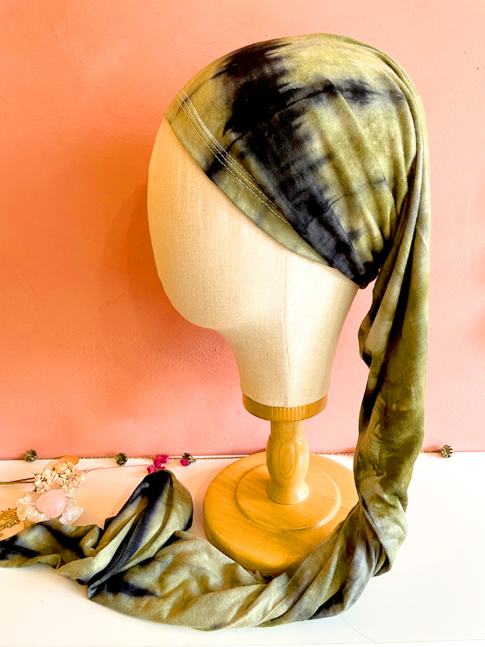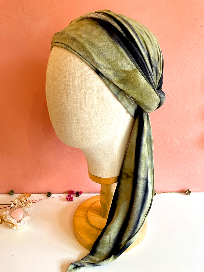 Le foulard à enrouler, parfois appelé “chaussette”, est le modèle idéal pour structurer facilement la silhouette, tout en respectant les cuirs chevelus sensibles.