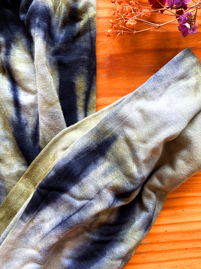 • Enroulez ensuite la longueur du foulard en jouant avec le motif visible. Vous pouvez laisser pendre les lanières pour un style bohème ou tout coincer sous un pli.