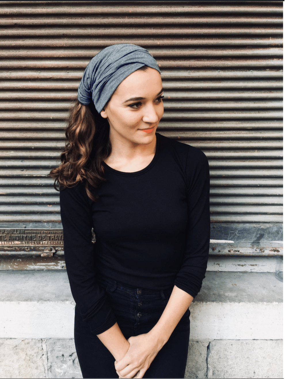 Bandeau à cheveux adapté pour chimiothérapie, pelade et alopécie SCRATCH ! en tissu hypoallergénique gris chiné : 96% viscose, 4% élastanne.